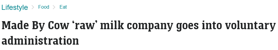 总部位于新南威尔士州的Made By Cow凭借其“世界上第一款可安全饮用的生牛奶,但上周宣布的这个突发消息,使它成为最新一家因支出上升而受害的澳资企业。