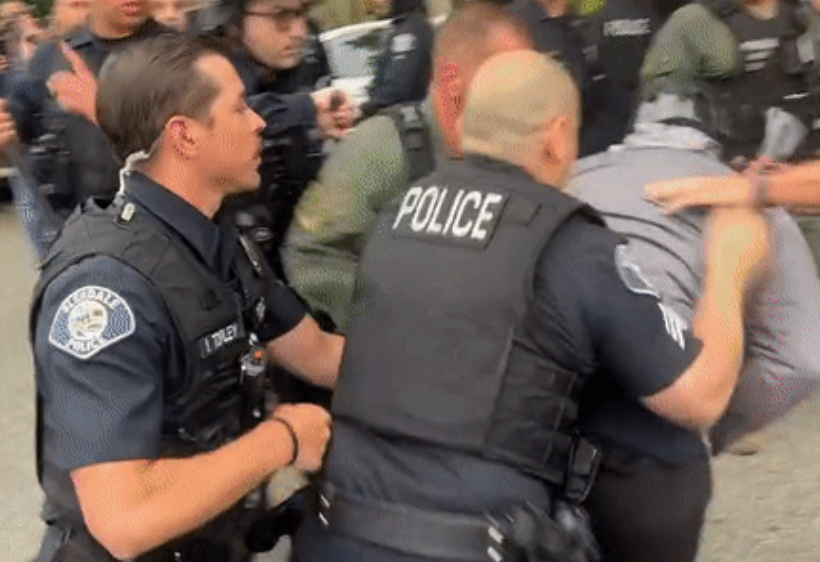 格兰岱警方表示,当天的抗议活动大部分是和平的,但一小部分人有过激行为,其中三人因妨碍执法和非法使用胡椒喷雾等罪名被捕。逮捕后,警方努力缓和现场局势,但以失败告终,并宣布现场为非法集会。在下午6点左右,警方疏散了人群,并召集了更多警员。