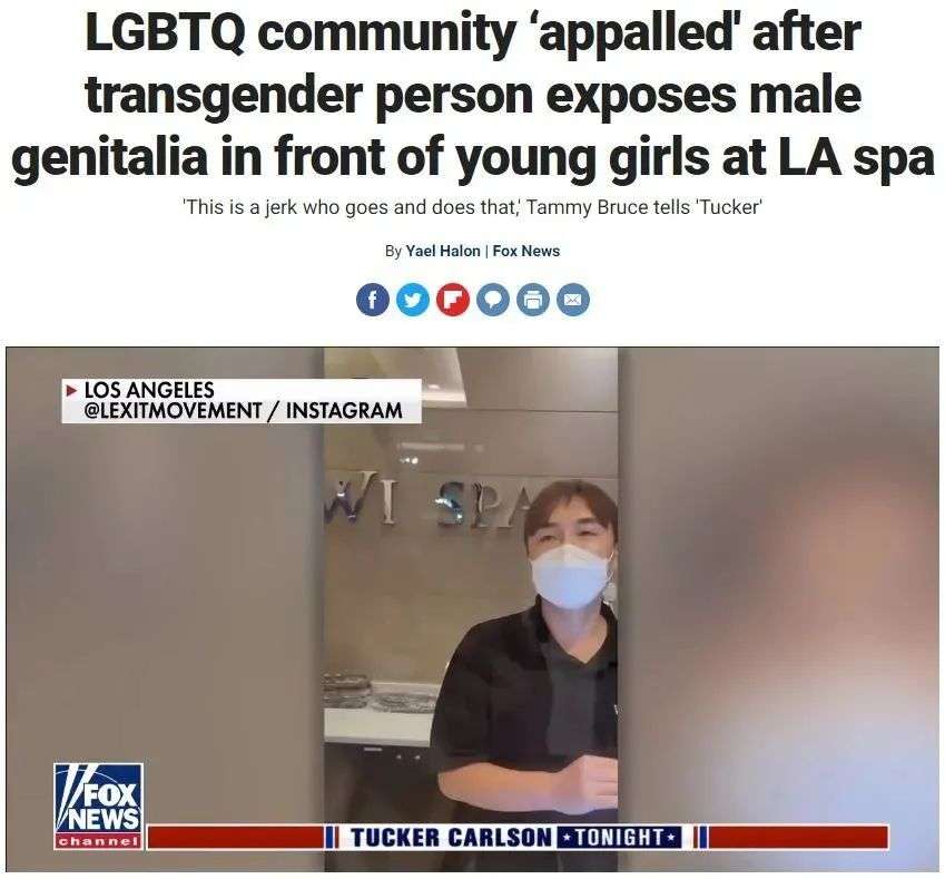 曾经有一名跨性别者在洛杉矶一家水疗中心的女性更衣室暴露自己下体,当时有年轻小女孩在场,就连同为同类的LGBTQ社区的成员对此感到“震惊”。
