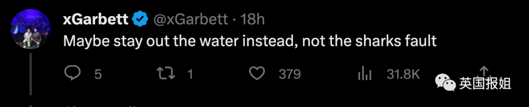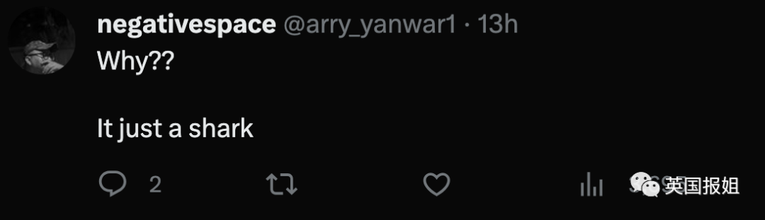 “建议人类离海远一点,鲨鱼有什么错啊?”