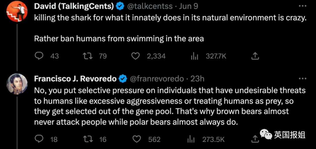 ——“鲨鱼只是在大自然里进行天性自带的捕猎活动,你们杀了它不是在发疯吗?还不如禁止人类在那片区域游泳。”
