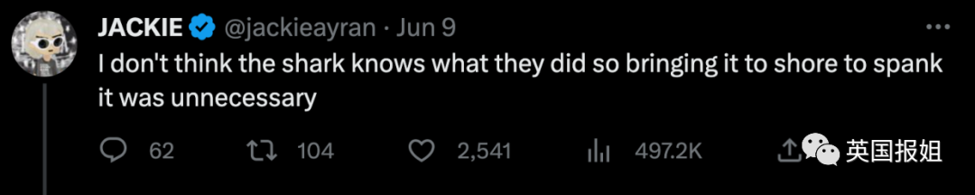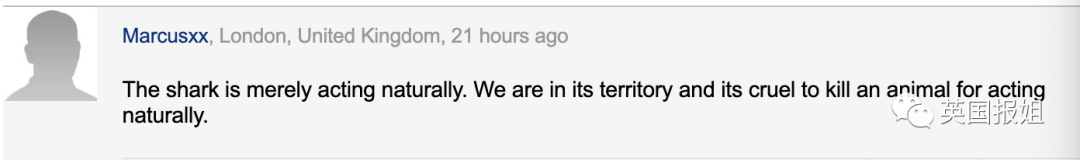 另一种声音认为,鲨鱼也是无辜的,这只是一个无奈的悲剧而已,没必要去伤害野生动物。