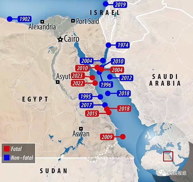 埃及的数据显示,自从2004年来,红海地区发生过7起鲨鱼致死事件,和8起非致命伤人事件。