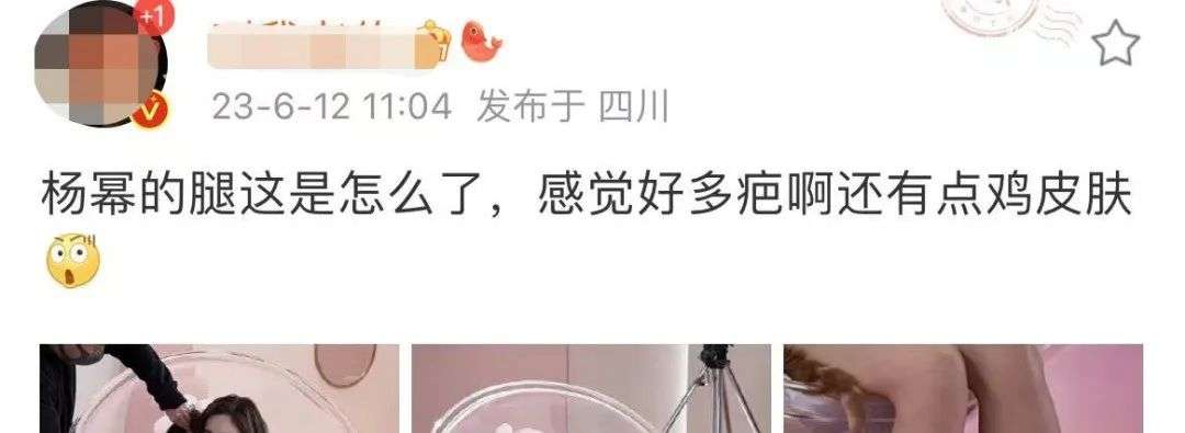 不过比起颜值,杨幂的腿受到了更多的关注。她腿上不知怎么弄得,有许多深色的疤痕,看上去非常扎眼。不仅如此,腿上的皮肤看上去也不太光滑细腻,甚至有些毛躁,和鸡皮肤一般。