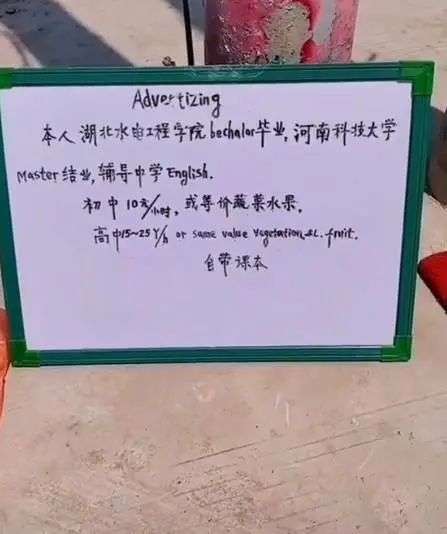 没错,这位大叔看似落魄,但他并不是一位普通的流浪汉,他不靠乞讨,不考施舍,而是靠替学生补习来赚取报酬。而大叔开出的价格相比起如今市面上的一对一英文补习,可以说是相当白菜了。