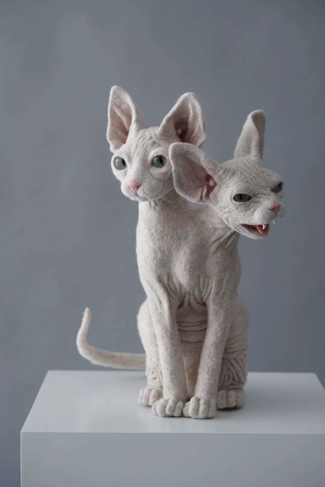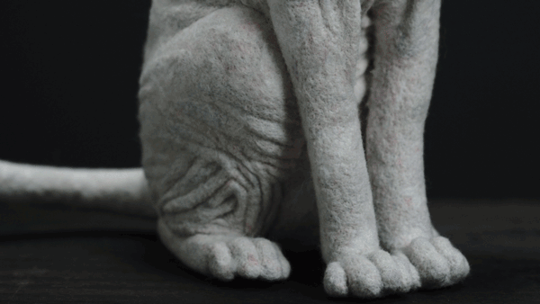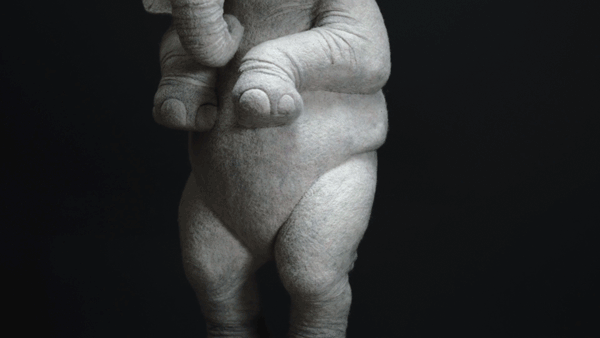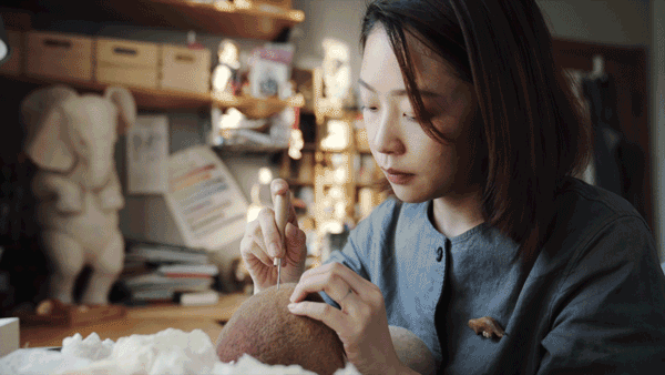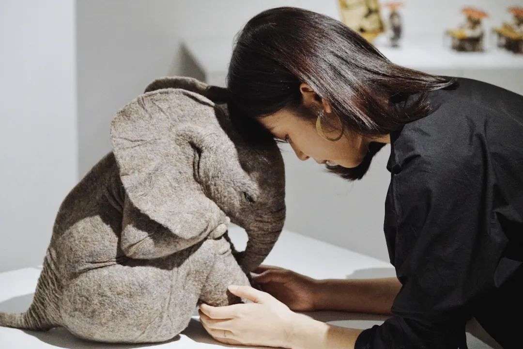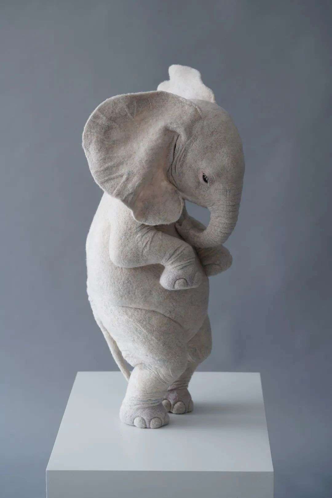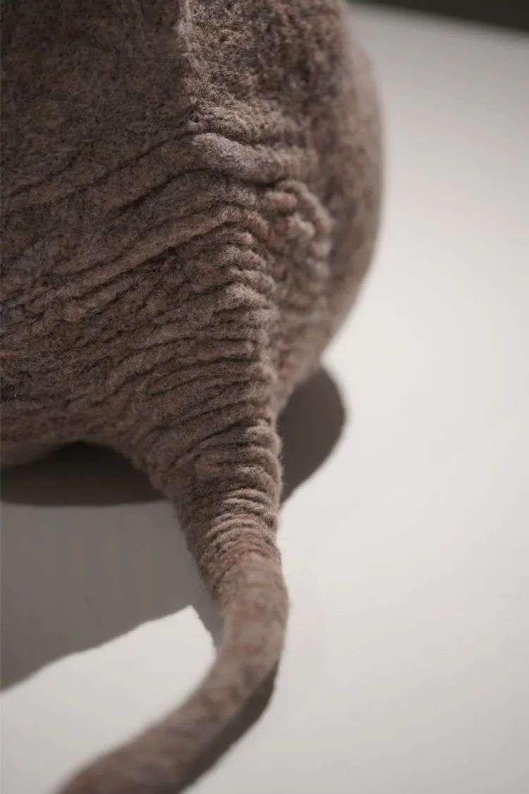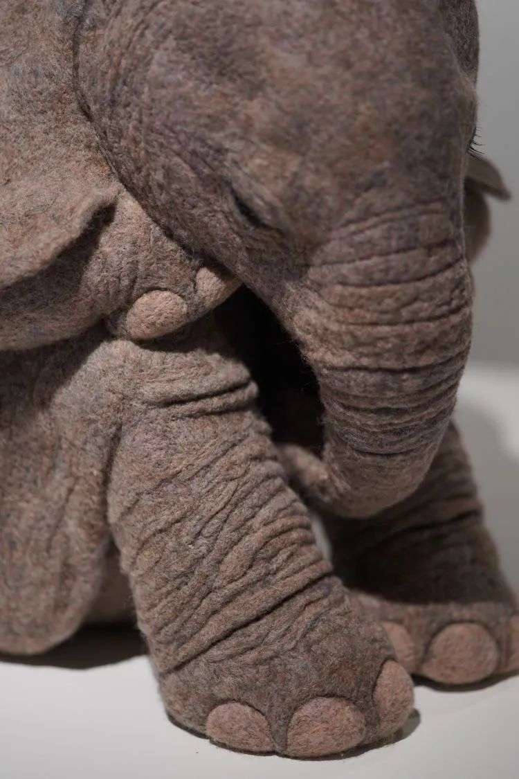 做这个小象用的羊毛很软,花了很长的时间去雕刻细节,堆砌出这种褶皱的感觉。当时我就想挑战一下自己,打破既定印象里的可爱。