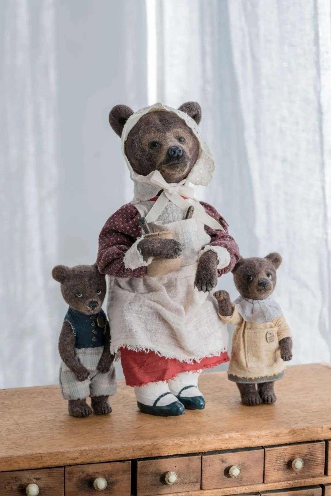 当时毛毡的材质在国内并不普及,花了好些功夫才在网上找了一家店,买一些比较粗糙的毛纱和工具,开始尝试着做。
