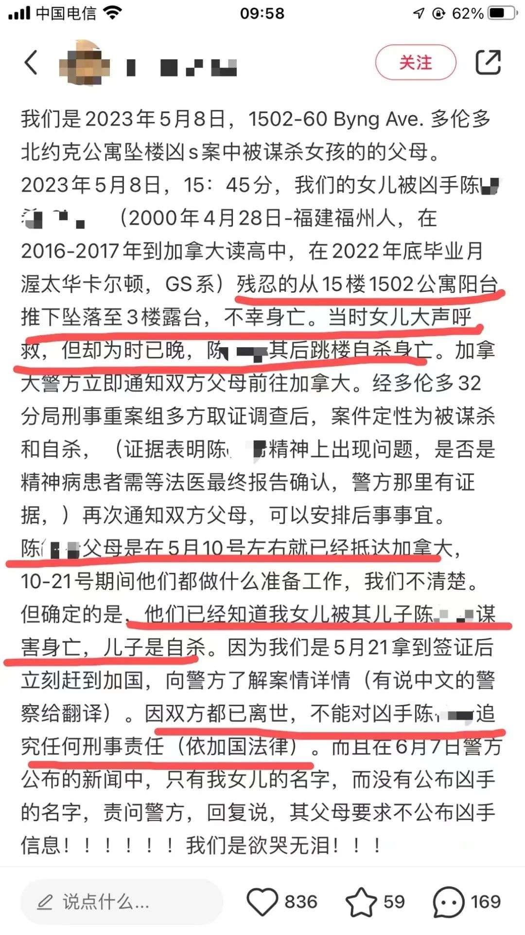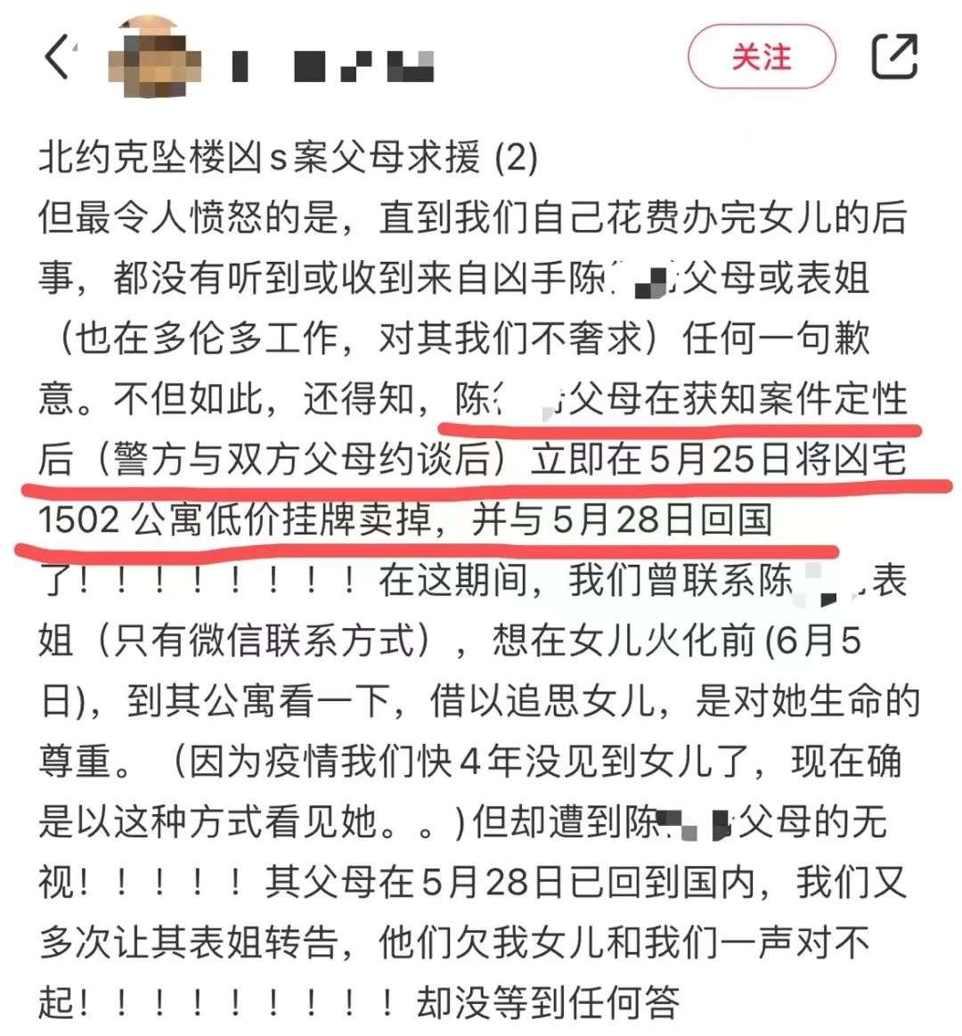 收藏23岁中国女留学生惨遭华人男友谋杀,凶手随即跳楼自杀!凶手父母“低价卖房跑路”,竟拒绝道歉赔偿?