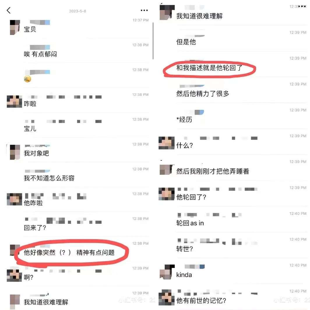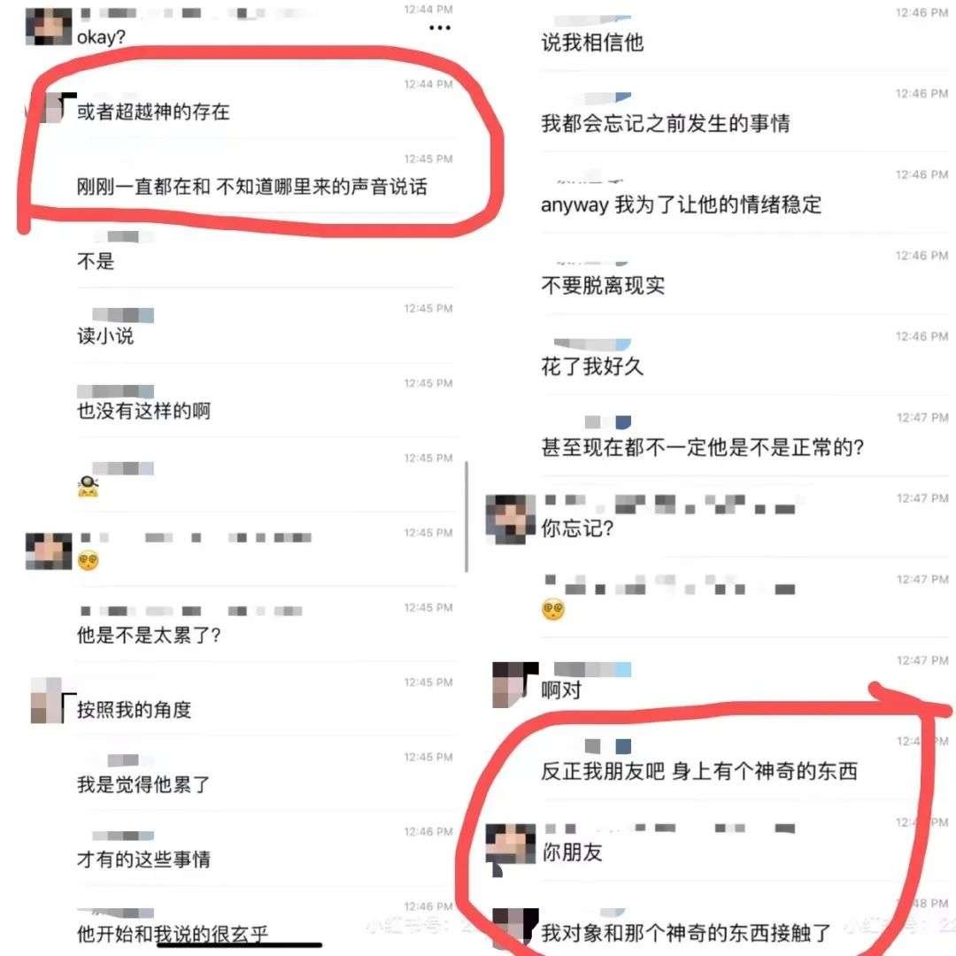 根据聊天记录可以看出,王某男友的精神问题是在某次旅游回来后出现的,自此王某男友就开始变得精神恍惚,举止怪异。