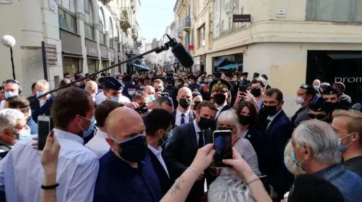 事发后,马克龙未改变行程,仍前往瓦朗斯(Valence)考察。当天稍晚时候,他在接受《道芬自由报》(Le Dauphiné Libéré)采访时回应说:“一切都好。不必太在意此次突发事件。”