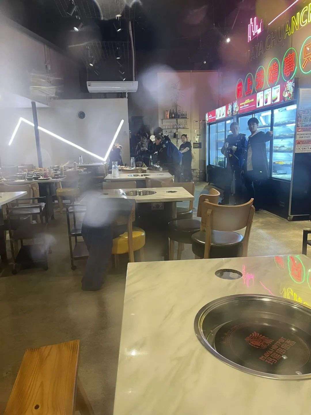 Yummy Mart是一家超市,位于张良麻辣烫的对面,当超市的店老板看到人们从附近的餐馆冲出来时,他们意识到了发生了什么。
