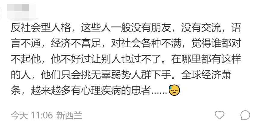 一些网友猜测议论说,该男子可能是因为办理工签被骗,来到新西兰后过不下去了,导致产生复仇心理。