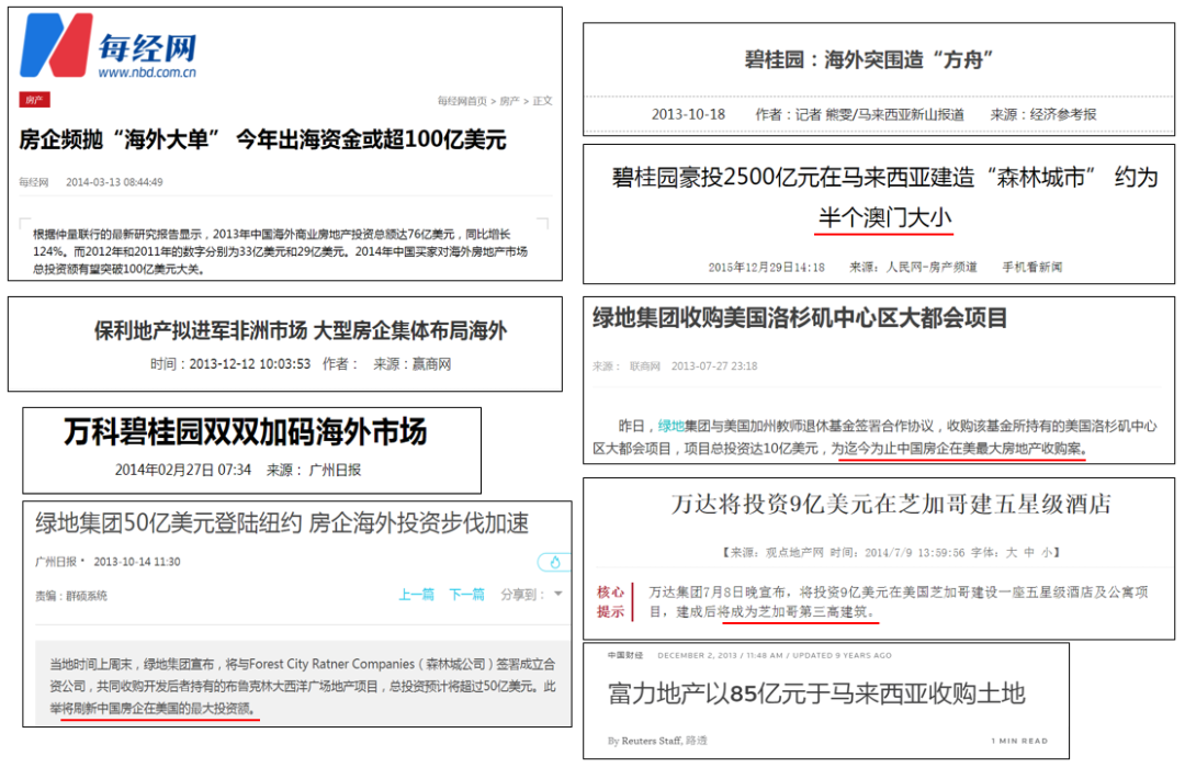 再回到2014年前后,在那一波“出海”热潮之下,中国开发商也在疯狂进行海外投资。