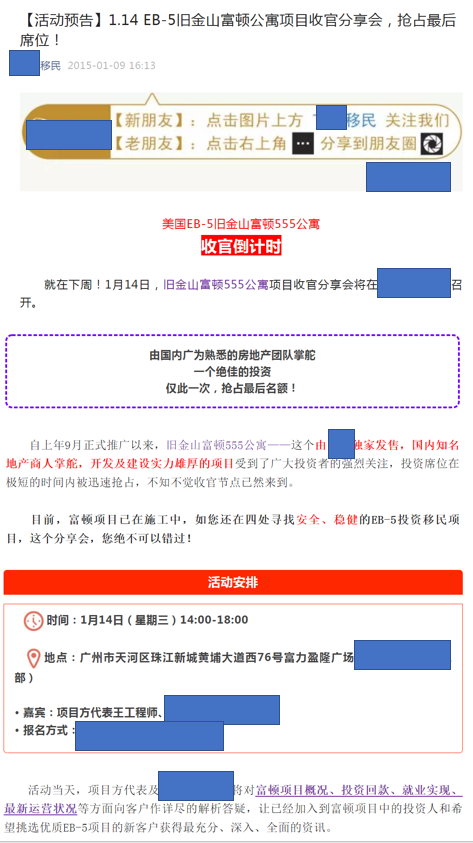 ▲图:移民公司对555项目的推广
