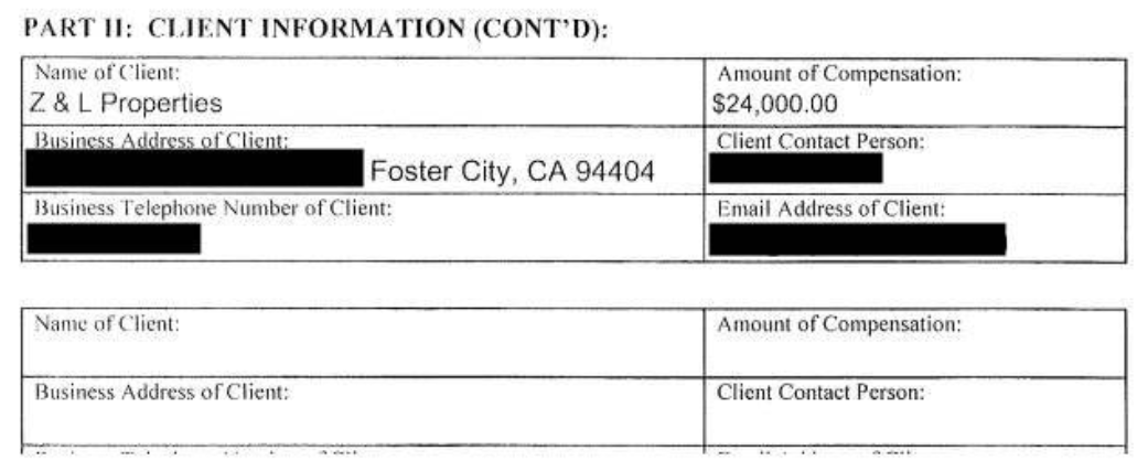 ▲图:旧金山道德委员会(Ethics Commission)的文件,将Z&L与这个人联系了起来,文件显示仅2017年一个季度,Z&L就向此人支付了2.4万美元的许可证“顾问”费。