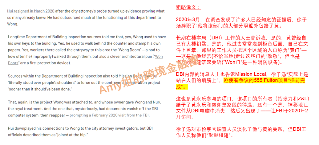 据旧金山市律师长办公室的调查备忘录称,发现了一封2013年的电子邮件,显示徐子汤为了方便黄永乐,甚至改变了楼宇局的许可规程。