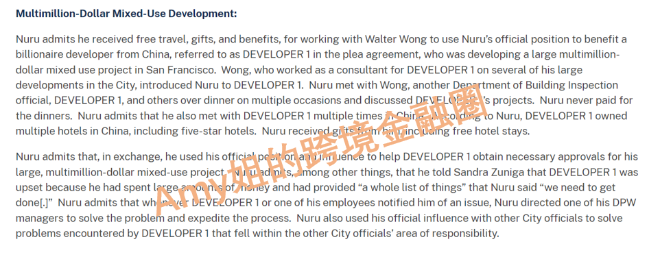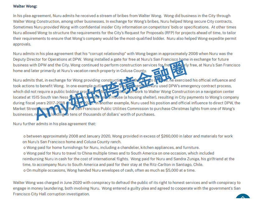 他承认自己在联邦发起的旧金山市府官员腐败案中犯有电汇欺诈罪,承认自己接受了一系列涉及贿赂和回扣的腐败罪行。