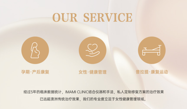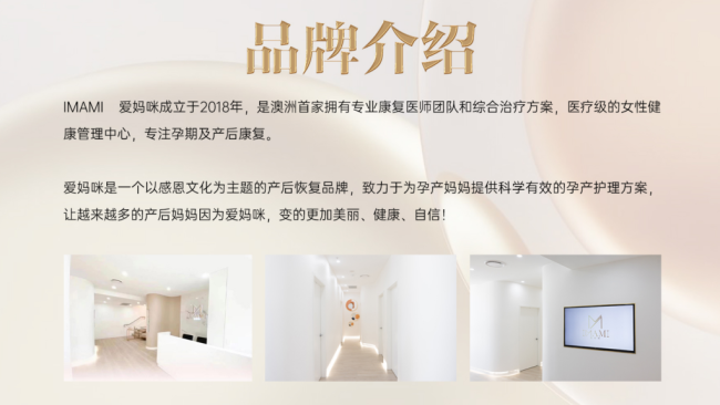 IMAMI爱妈咪成立于2018年,是澳洲首家拥有专业康复医师团队和综合治疗方案的医疗级女性健康管理中心,之后一直专注于孕期及产后康复,让越来越多妈妈变得更加美丽、健康和自信。