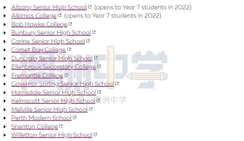 事实上,在西澳,有24所公立中学提供资优学术、艺术和语言课程,包括: