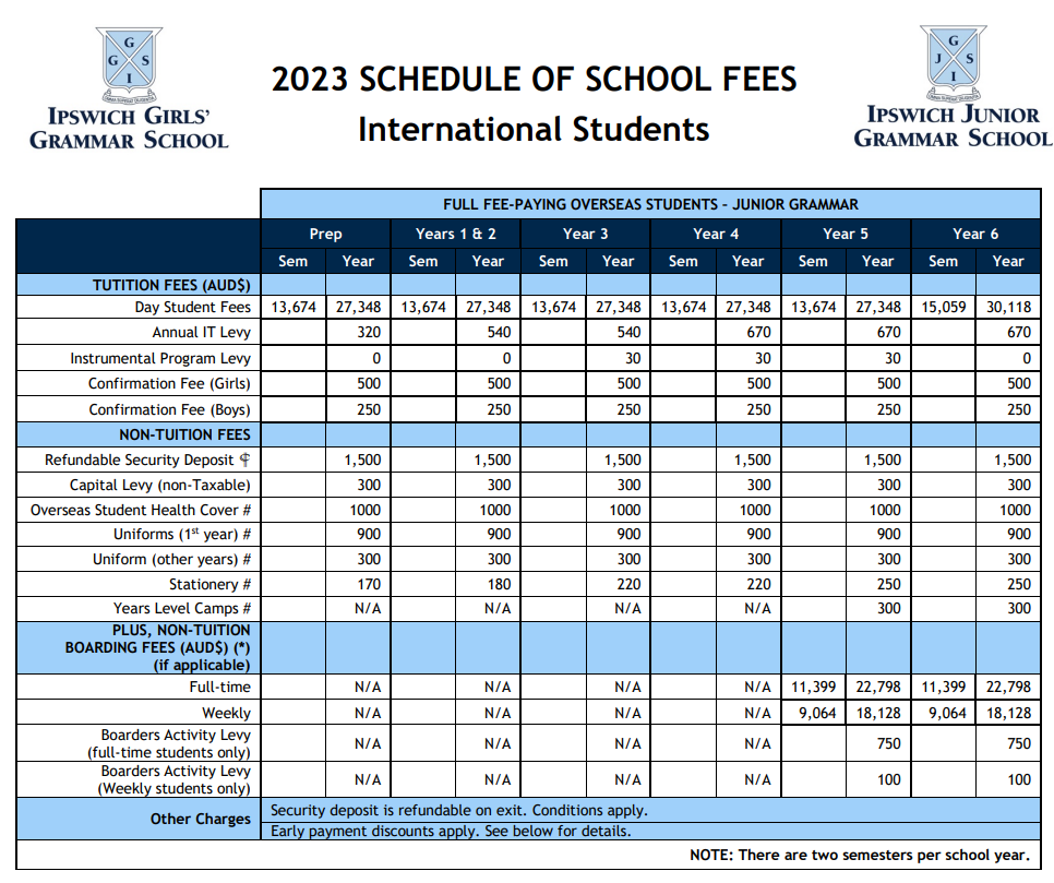 2023年,该校国际生每年的学费如下: