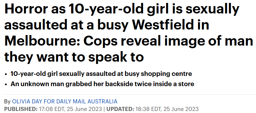 近日,在墨尔本东南区Overland Driv的一家商店里,一名10岁女孩竟然两次遭遇“咸猪手”!