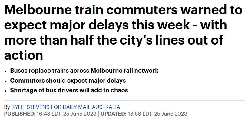 在7月9日之前,墨尔本西部16条城铁线路中的9条将因大规模的轨道维修而停运。