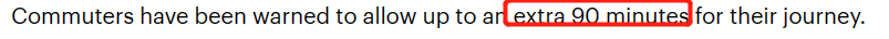 通勤者被警告要多留出90分钟的出行时间。