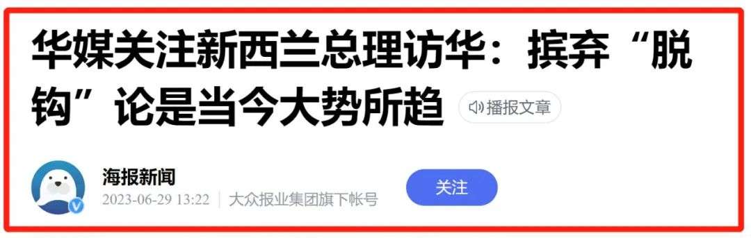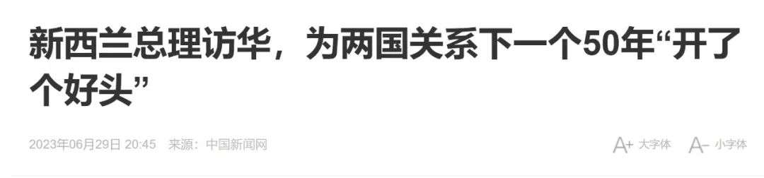 中新网的评论认为,新西兰总理Hipkins率庞大经贸代表团访华,释放出强烈的与中国合作的信号,相对于部分国家“脱钩论”的主张,这是响应新西兰人时代需求的利好佳音。