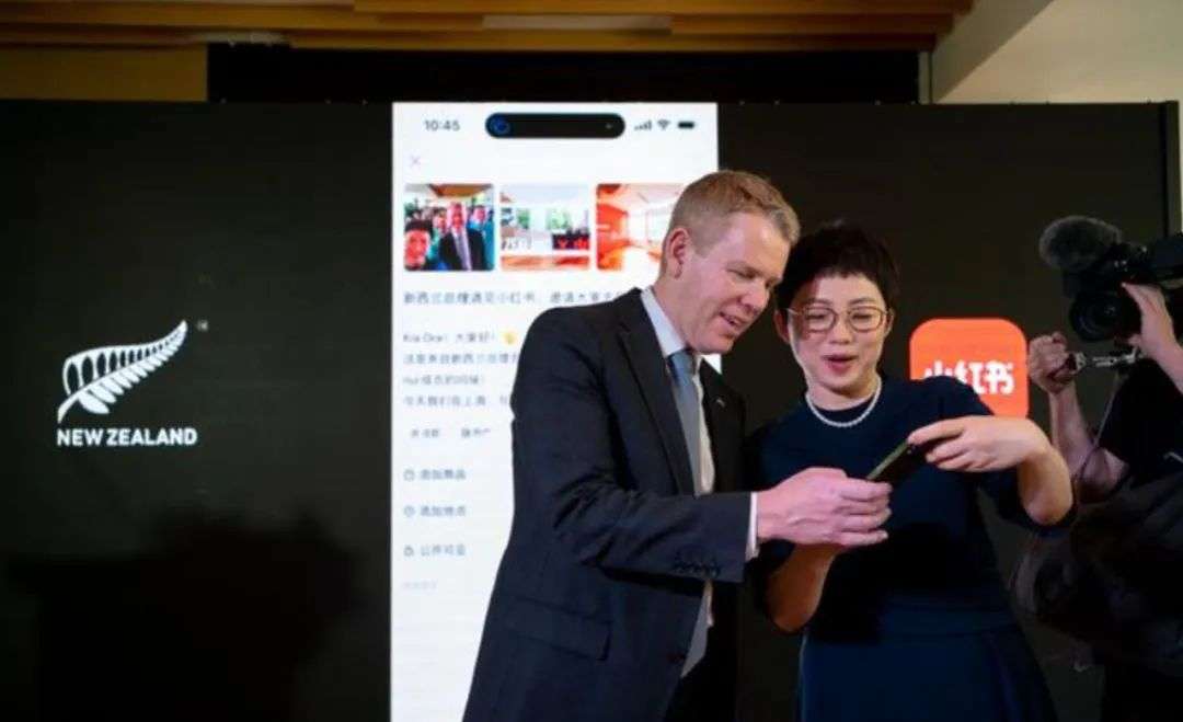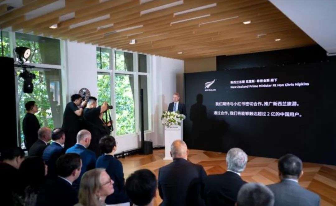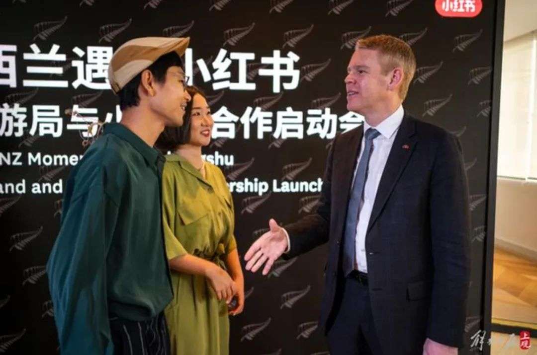 Chris Hipkins还来到上海新西兰中心,联手小红书向中国游客推广新西兰旅游。