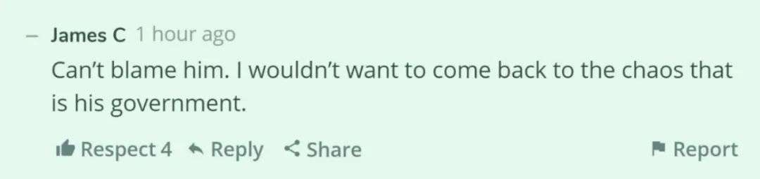 “不能怪他,如果是我,也不愿意回来面对这届政府造成的各种混乱。”