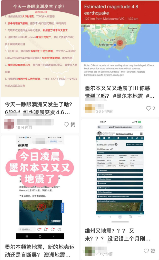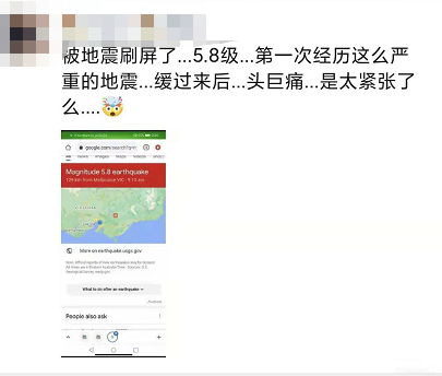 首先是华人社交媒体,不少人虽然在刷屏地震,但是真正有明显震感的人数并不多。大家都只是在感叹,墨尔本又双叒叕地震了...