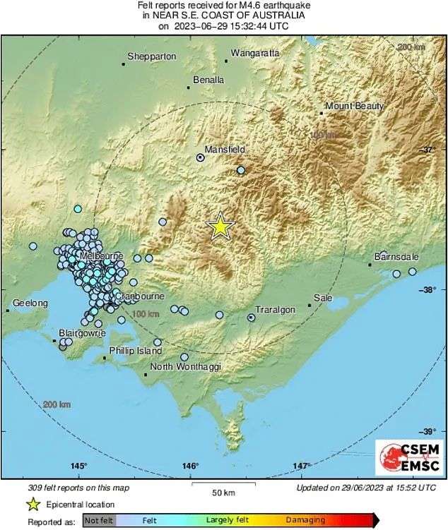 墨尔本突发4.6级地震!震源深度3公里!众多墨尔本人震感明显!