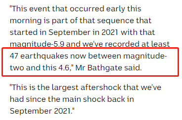 墨尔本今天凌晨突发地震,震级达到了4.6级。令人没想到的是,它竟然是2021年9月那场大地震的余震。而且那场地震的余震已经发生了47次。