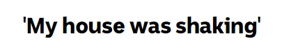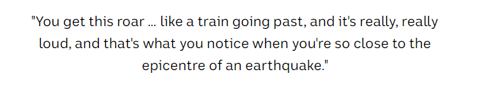 当然了,震感最为明显的还是地震周边居民,距离地震爆发地点不远处一位小镇居民接受了媒体采访,他表示,昨天的深夜仿佛有火车在他身边呼啸而过一样,那种感觉想忽略都很难...