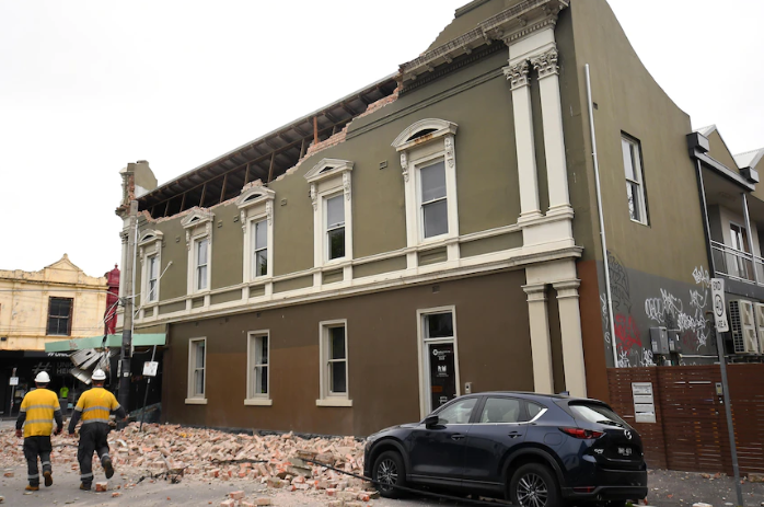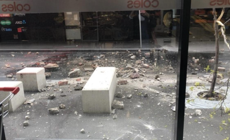 在墨尔本东南的Windsor,民众发现Chapel St上一栋楼房已经被震散,砖块洒落一地。