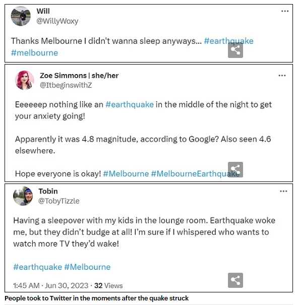 不过其他社交媒体,比如说Twitter上还是有不少墨尔本居民表示震感非常明显: