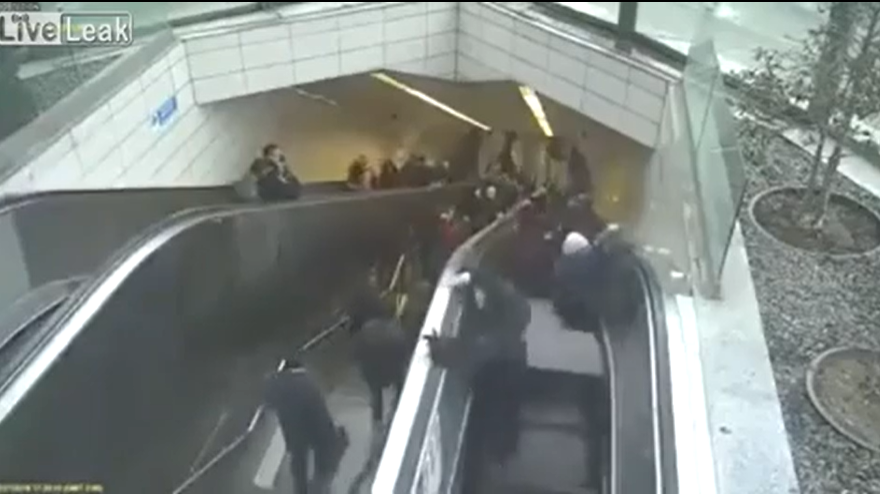 事件发生在高峰时段,据报道一开始手扶电梯没有在运作,人们就像下楼梯一样在上面排着队往下走,有的则选择走旁边的楼梯。