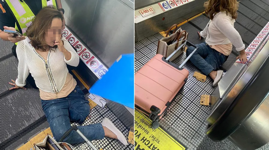 “这是我使用电动步道和扶手电梯时最害怕发生的事情...希望她能够完全康复吧”