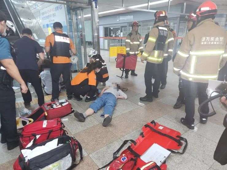 在本月初,韩国地铁站也发生了一起集体受伤事件,