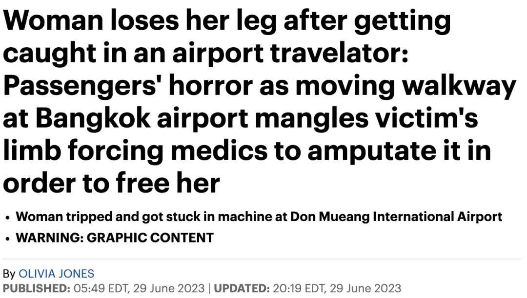 收藏恐怖!妹子在机场自动步道摔倒被卷入,被迫当场截肢解救!现场触目惊心!路人吓哭!