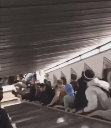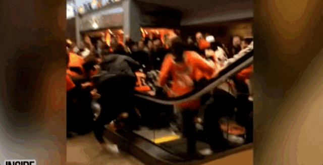 乘坐扶梯的球迷们遭遇扶梯事故,