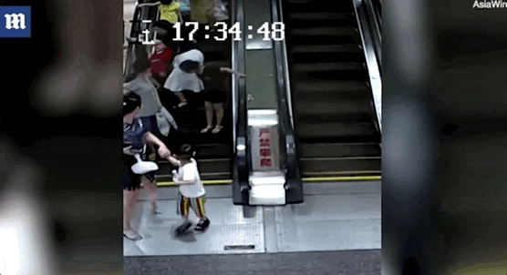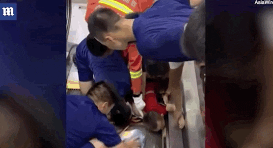 扶梯继续向下移动着,男孩儿的生命危在旦夕!