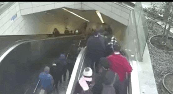 再比如2018年,发生在意大利罗马地铁站扶梯加速事件,