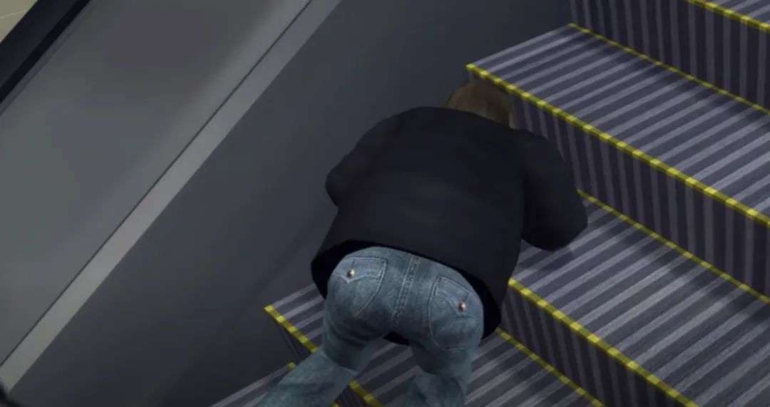 小Misha的头部剧痛,为了不被扶梯带着往上跑,