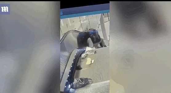 但扶梯却仍然自顾自地运行着,丝毫没有停止!