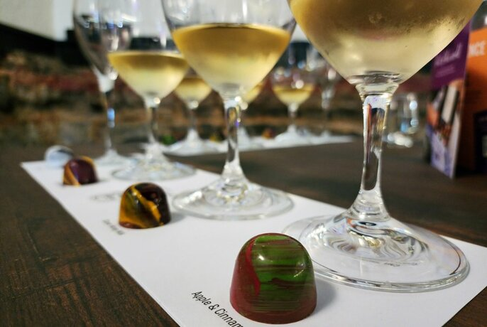 和主厨Sigrid一起,品尝Only Mine的八种手工巧克力美食,并搭配八种绝佳的葡萄酒,