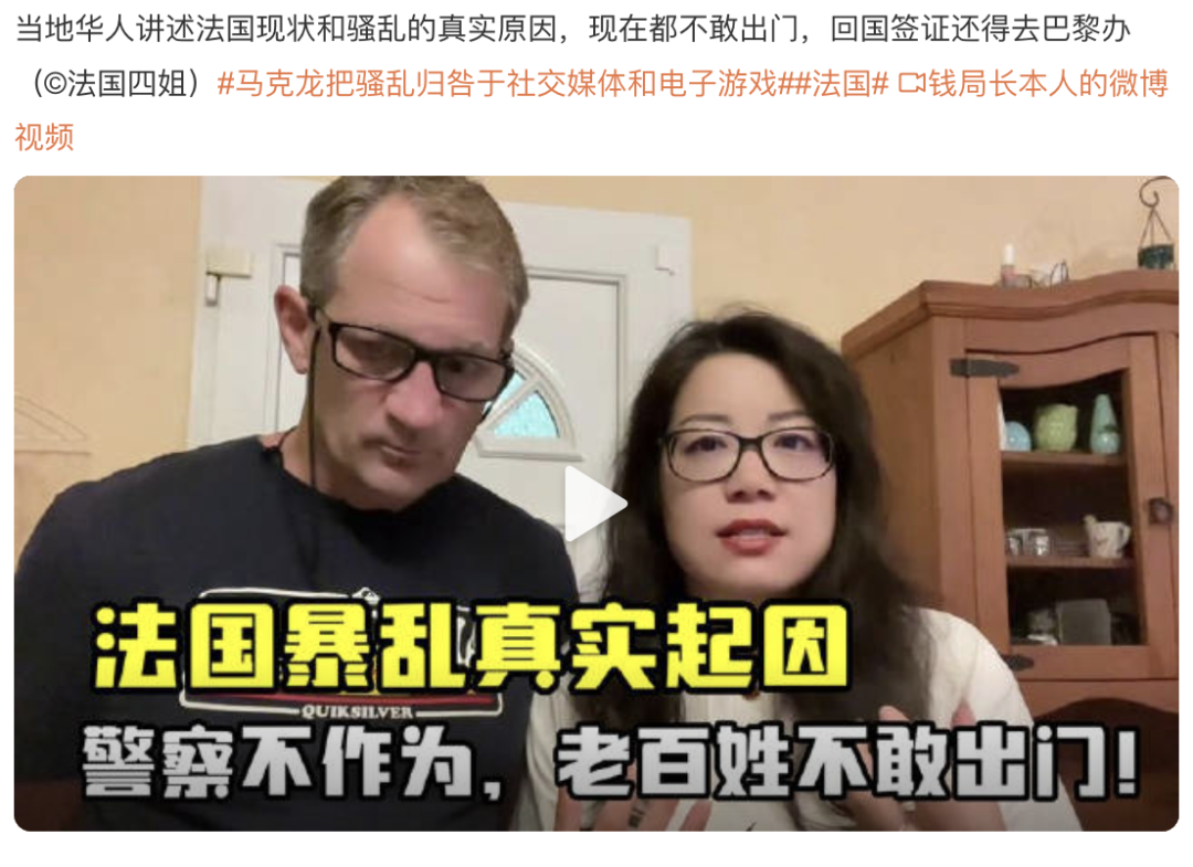 还有居住在法国的网友发视频控诉警察不作为,而法国目前的情况,他们是连出门都不敢出。