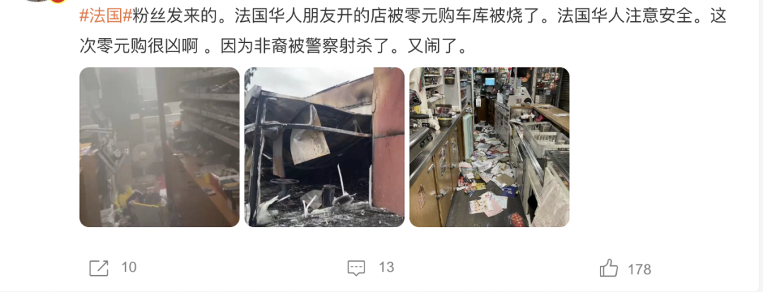 小编在这里再次提醒,居住在法国的华人们,或者是近期有计划去法国的华人,一定要注意安全!尽量呆在家中等安全区域,不要去公共场合,远离暴乱人群,避免受到伤害!