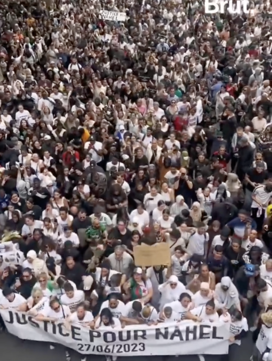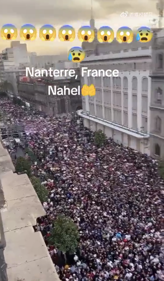 比如法国巴黎近郊 Nanterre 地区,就有大量民众抗议游行。