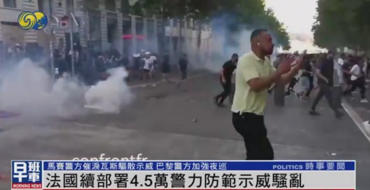 法国警察枪杀少年事件发生后第5天,在第二大城巿马赛,7月1日下午已有示威者上街聚集,防暴警察发射催泪瓦斯试图驱散,街头到处烟雾弥漫,有年轻人向过往的警车投掷杂物发泄不满。据报冲突持续到晚间,有多人被捕。